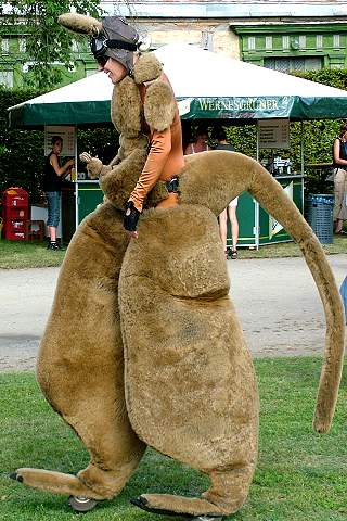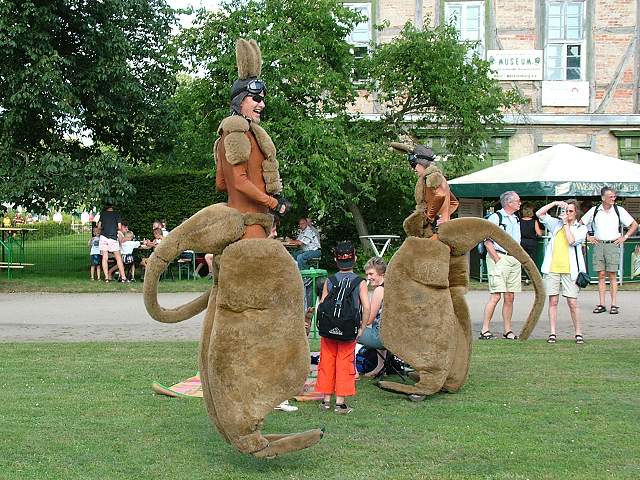 Zwei Kängurus, ziemlich groß und ziemlich ungewöhnlich - direkt aus Australien - erobern den Schlosspark.