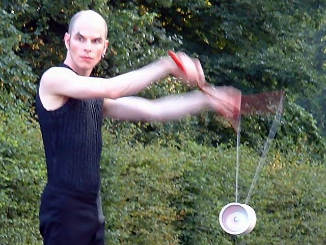 Mit dem Teufel persönlich scheint es in Jochen Schells Diabolo-Jonglage zuzugehen. Der Artist, der auch ein Künstler der Devilsticks und der Ringe ist, hat einen eigenen Stil entwickelt, der aus technischer Brillanz und rhythmisch fließenden Bewegungen eine faszinierende Harmonie schafft Nach seiner Ausbildung an der staatlichen Zirkusschule im französischen Châlons-sur-Marne erhielt Schell 1990 den Prix Spécial beim Cirque de demain in Paris. Seither begeistert der Frankfurter Artist sein Publikum im In- und Ausland.