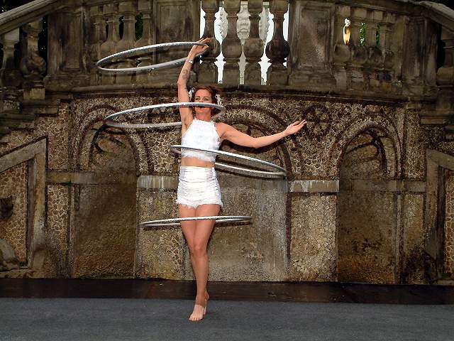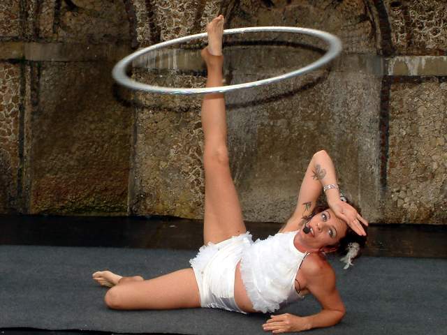 Die Australierin JUDITH LANIGAN hat ihr Handwerk an der russischen Zirkusschule in Moskau gelernt. Nicht zuletzt aufgrund ihrer fundierten Ausbildung hat sie sich inzwischen als weiblicher Clown weltweit einen Namen gemacht. Bei ihrer Interpretation des Sterbenden Schwans versucht sie mit Hilfe des Publikums die komische Seite der tragischen Vorlage zu ergründen. Die Meisterin des Hula-Hoop-Reifens bezaubert mit einem eigenwilligen 'Ballet', bei dem am Ende nicht nur den Zuschauern der Atem stockt. |