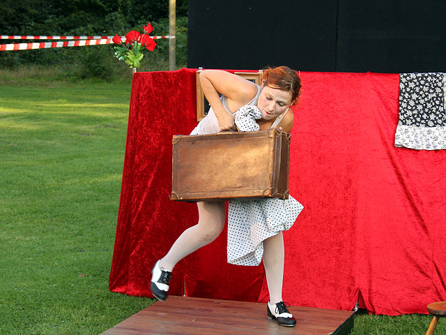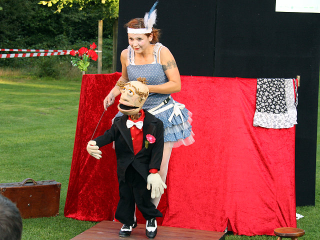 Altmodisch-nostalgisches Straßentheater der 20er Jahre. Eine romantische Liebesgeschichte mit Tanz, Stummfilmbildern und einem überraschenden Ende. Saskia Thijs zeigt bei dieser charmanten Vorstellung eine spektakuläte Steptanzeinlage. Konzept und Puppen von Saskia Thijs.
