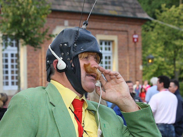 Jan Tenne mit Funkgerät und Antenne auf dem Kopf. |