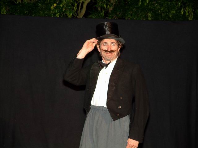 sowie einem Stil, der sich Elementen der Pantomime, der Clownerie