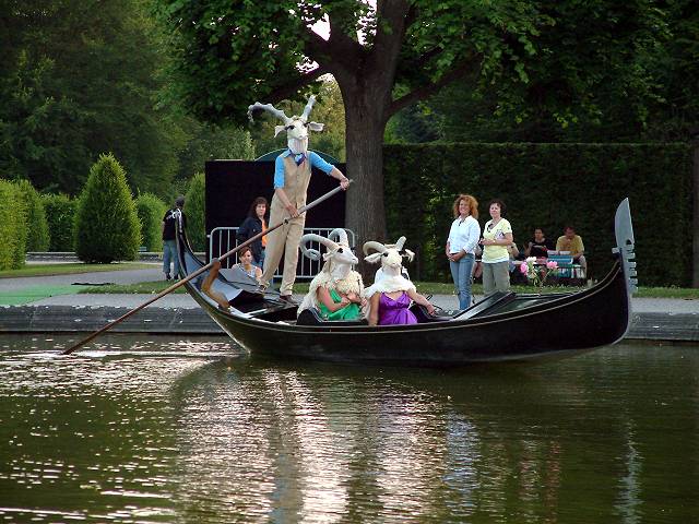 gestattet zu verweilen, und die fremd aussehenden Gondelfahrer beobachtet.