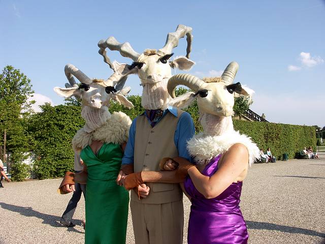 Masken, ein fremder Gesang: ein lebendes Bild.